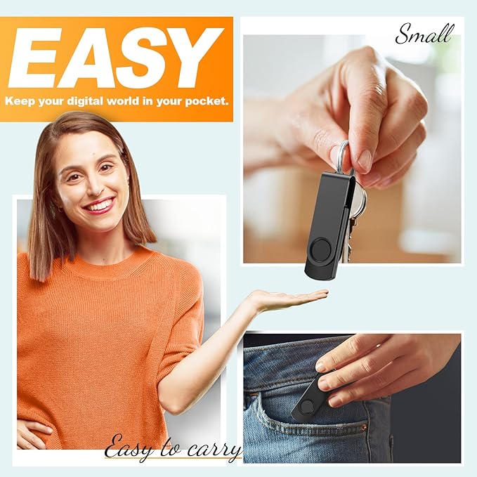 • Aluminum cover: Pen drive with 360° swivel aluminum cover to protect USB connector. The end of the jump drives with eyelet hole that can easily be attached in your key chain, backpack, lanyard. Safety and easy carrying, take your data anywhere