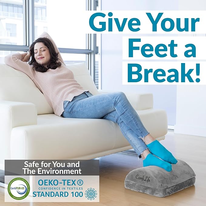 ComfiLife Foot Rest for Under Desk at Work – Adjustable Height Memory Foam Foot Stool for Under Desk, Office Chair & Gaming Chair – Ergonomic Footrest for Back & Hip Pain Relief (Gray)