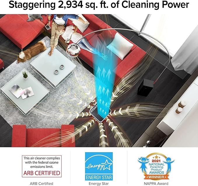• PURIFY XL AREA UP TO 2,934 SQ FT - Improve indoor air circulation and purify 2,934ft² spaces in 60 minutes, or 586ft² in 12 minutes (CADR: 664.6 m³/h). The top-performing air purifier is perfect for large room, office, high ceilings, and open-concept spaces.