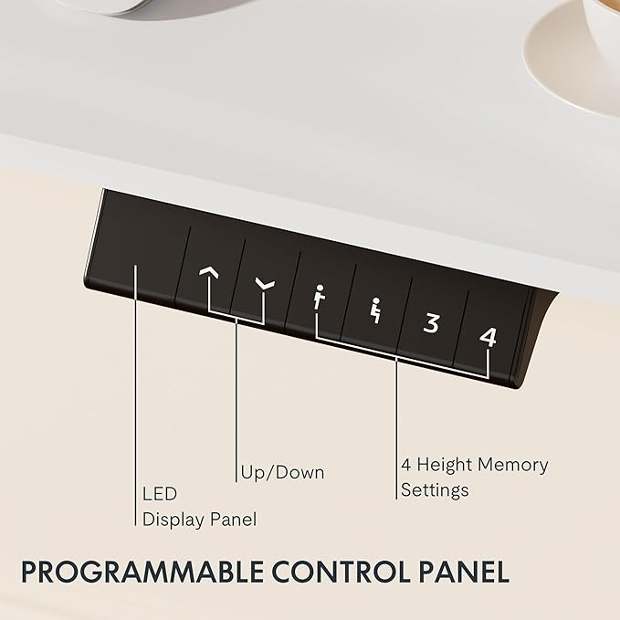 • 4 MEMORY PRESETS: Easily store and recall different height settings with our multifunctional memory system. Effortlessly switch between sitting and standing to reduce the risk of health issues like back and neck pain caused by prolonged sitting.