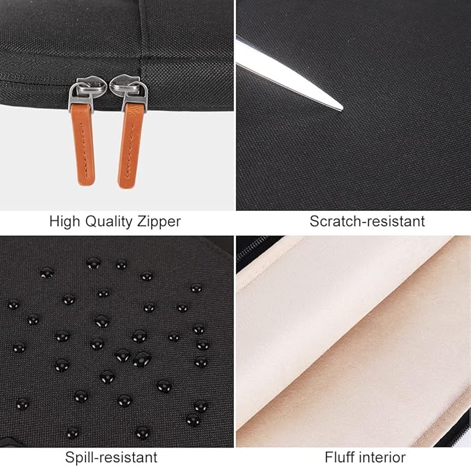 • POWERFUL PROTECTION: Designed with shockproof soft lining and corner protection design, this 13 inch laptop sleeve offer decent cushion to reduce the impacts from daily bumps or accidental drops, provide your laptop with 360° all-around protection. Made of anti-scratch nylon fabric with waterproof coating, this protective laptop case can obstruct the splashing water or rain effectively, don’t worry about getting your laptop wet.