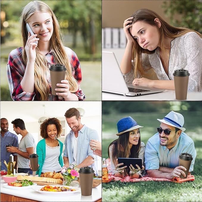 • Value Pack: You will get 100 packs 16 oz brown paper cups, and 100 black lids. ideal for family, office, restaurant, and party uses. Hot beverage drinking cups are great for serving coffee, tea, hot chocolate, and more