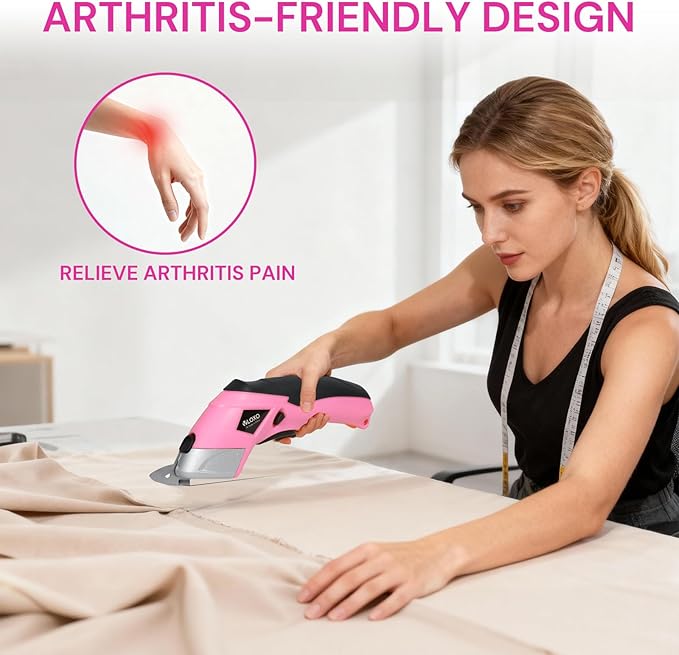 VLOXO Cordless Electric Scissors Cardboard Cutter with 2 Type Blades Rechargeable Powerful Shears Cutting Tool for Fabric Electric Box Cutter Leather Felt with Charger & Storage Box-Pink