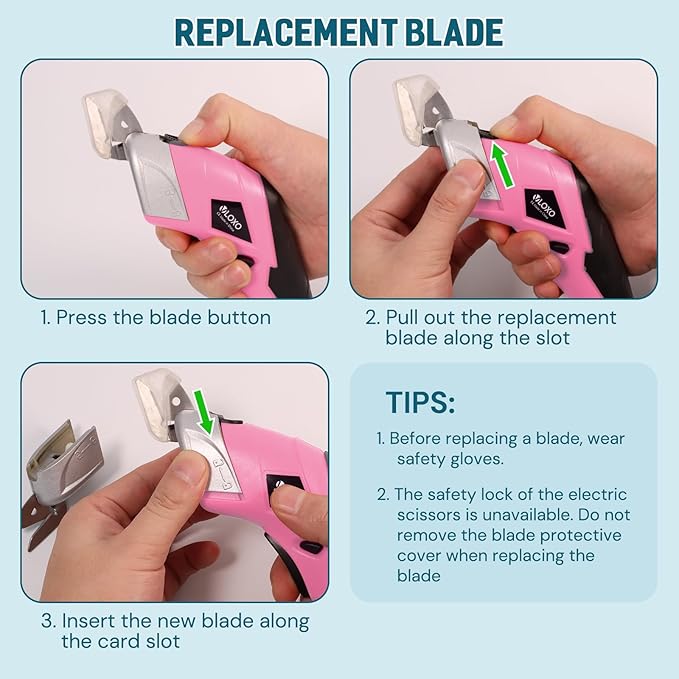 • Two Type Blades: The VLOXO electric fabric scissors are equipped with 2 different cutter heads. Each cutter head has a suitable material for cutting, so that you can cut more comprehensively. Meanwhile, the replacement of the blade is very simple. D-Blade for cutting rigid, tougher materials such as solid cardboard、plastic sheets、tin sheets. O-blade for cutting flexibl, softer material such as Cotton Fabric、Corrugated cardboard、Felt fabric、Carpet backing、Rose Sems
