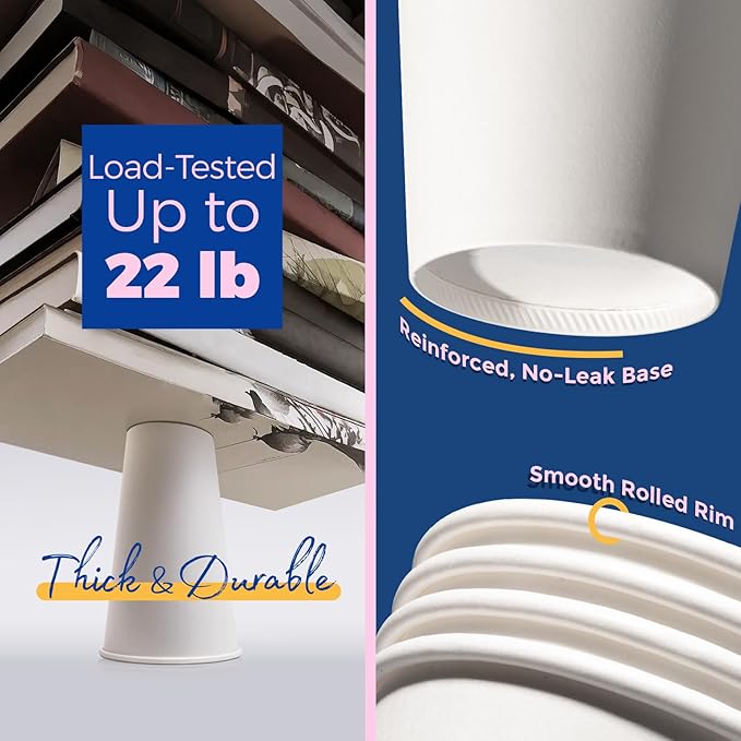 • Leak-Free for Over 7 Days: This set includes paper cups, lids, sleeves. Made from recyclable paper, these durable coffee cups keep your beverage warm while ensuring your hands stay comfortably cool.