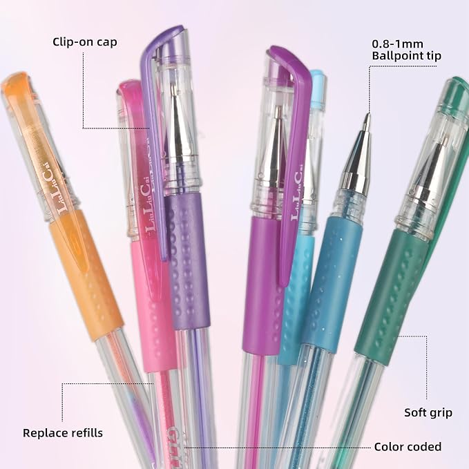 • Premium Quality - Our colored gel pens and refills come with 40% more ink, features 0.8mm-1mm ballpoint tip and soft grips, which makes our coloring pens last longer, and perfect for writing, drawing, sketching. It also dries fast, no skipping, no smearing, perfect as colored gel pens for adult coloring.