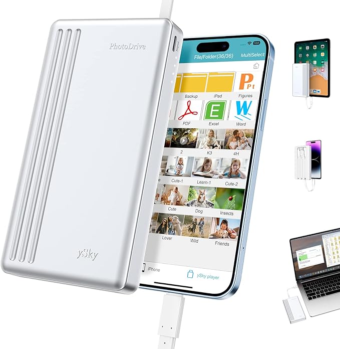 ySky MFi Certified 2TB External Hard Drive for iPhone iPad MacBook Computer,Portable Photo Stick USB Flash Drive Storage Device to Backup Photo| Video | Music| File 【One-Touch Backup】