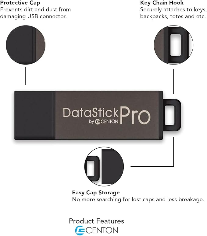 Centon DataStick Pro USB 2.0 Flash Drive 16GB x 1, Silver (S1-U2P17-16G-B)
