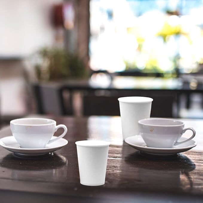 • Material: The white paper cups made of thick paper, enough durable and sturdy to withstand multiple uses. Whether cold or hot, these paper cups are perfect without collapsing or leakage. The mouth of the cup is designed with a rolled edge, which is round and smooth and not burn the lips.