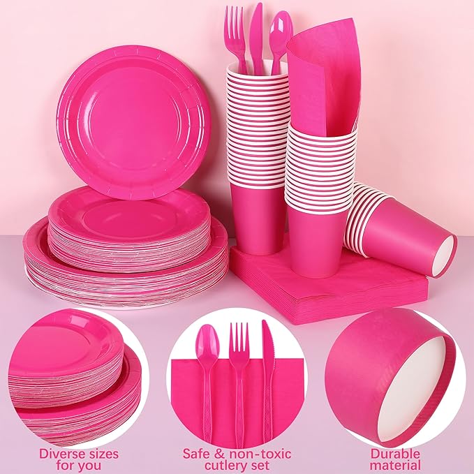 • Ideal for Every Occasion: these hot pink birthday party supplies are suitable for almost any occasion, such as birthday-themed parties, boys' and girls' birthday parties, baby showers, picnics, barbecues, and hot pink theme parties, lovely to help you create a fun party