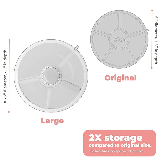 • MORE THAN A SNACK CONTAINER - Snack spinner is 8.5 inches in diameter and 2.1" deep, making it perfect for lunch size portions. Interactive button keeps kids engaged and assists with fine and gross motor skills as they choose snacks independently.