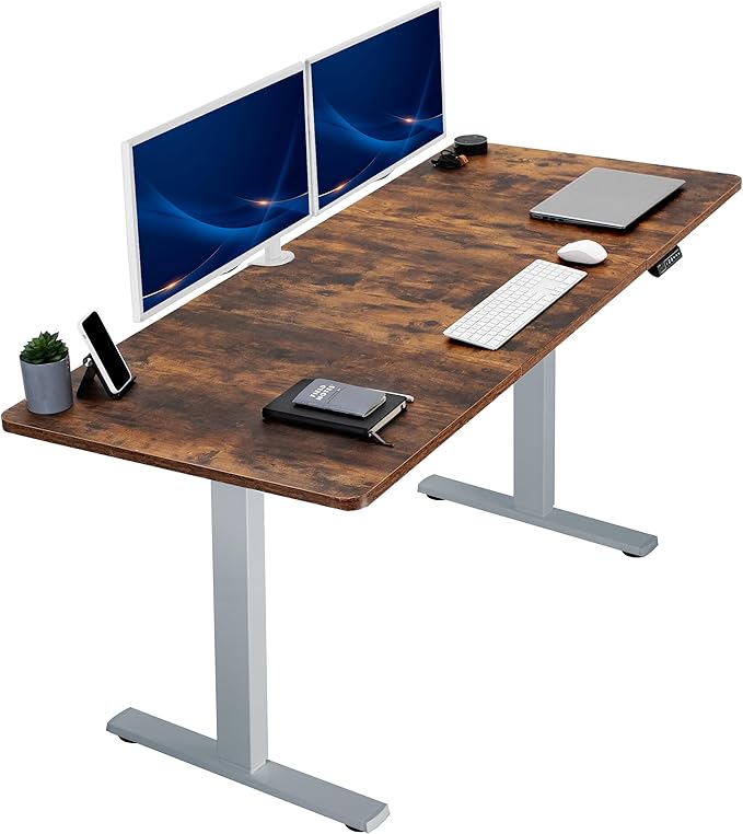 VIVO Electric 71 x 30 in Rustic Standing Desk, Memory Height Adjustment, 1B Series, Vintage Brown Top Gray Frame, DESK-KIT-1G7N