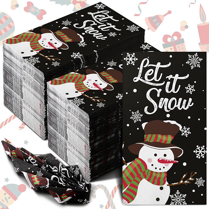 • Elegant and Charming Design: these snowman paper dinner napkins are printed with snowman and snowflake patterns on black background, paired with the floral character 'Let it snow' , which can better attract people's attention
