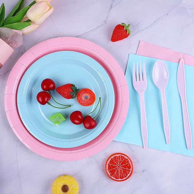 • Ideal for Every Occasion: these light pink & light blue He or She Plates dinnerware are suitable for almost any occasion, such as birthday-themed parties, boys' and girls' birthday parties, 1st Birthday and Baby Shower, picnics, barbecues, and Christmas parties, lovely to help you create a fun party