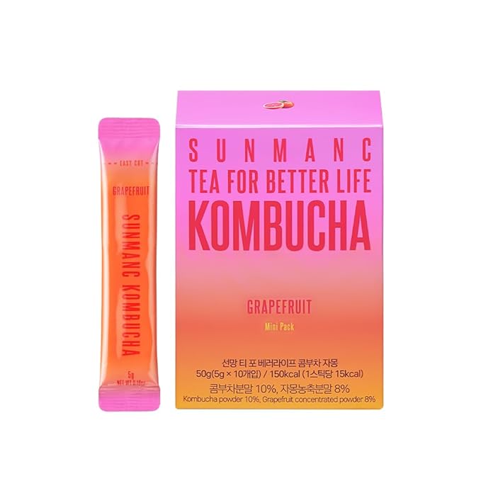 SUNMANC Kombucha 10 packets, Sparkling Probiotic Fermented Drink, Convenient Powdered Drink Mix, Tea Powder, Low Calories, Sugar 0g, Low Caffeine (Grapefruit)