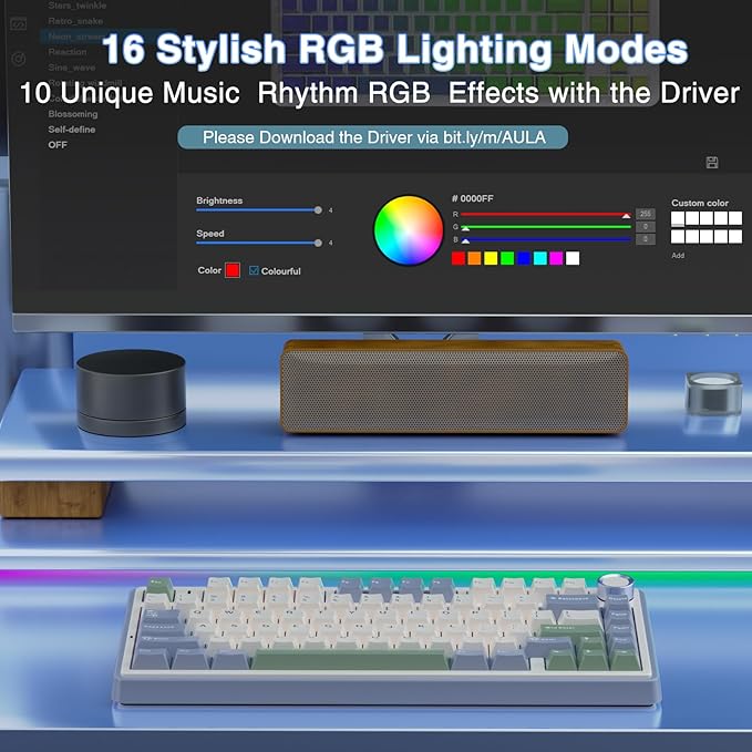 • Professional Gaming Keyboard: No matter the outlook, the construction, or the function, F75 mechanical keyboard is definitely a professional gaming keyboard. This 81-key 75% layout compact keyboard can save more desktop space while retaining the necessary arrow keys for gaming. Additionally, with the multi-function knob, you can easily control the backlight and Media. Full-key macro programmable, you can customize the function of single key or key combination function through F75 driver to increase the probability of winning the game and improve the work efficiency(Driver download: bit.ly/m/AULA). N key rollover, and supports WIN key lock to prevent accidental touches in intense games