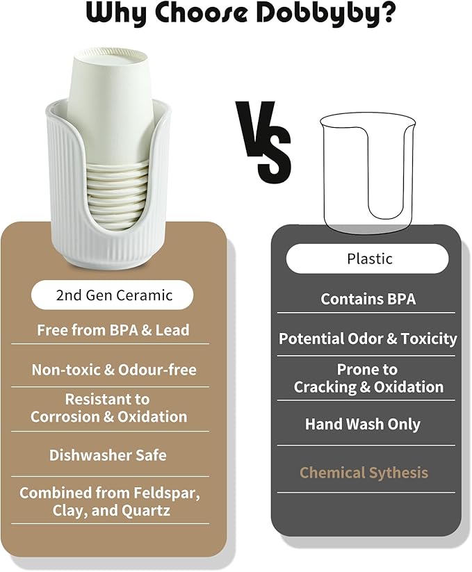 • Premium Craftsmanship: Our cup holder is meticulously crafted from high-quality pottery, resulting in a stunning and symmetrical design. Its durability and dishwasher-safe properties ensure effortless cleaning and long-lasting use.