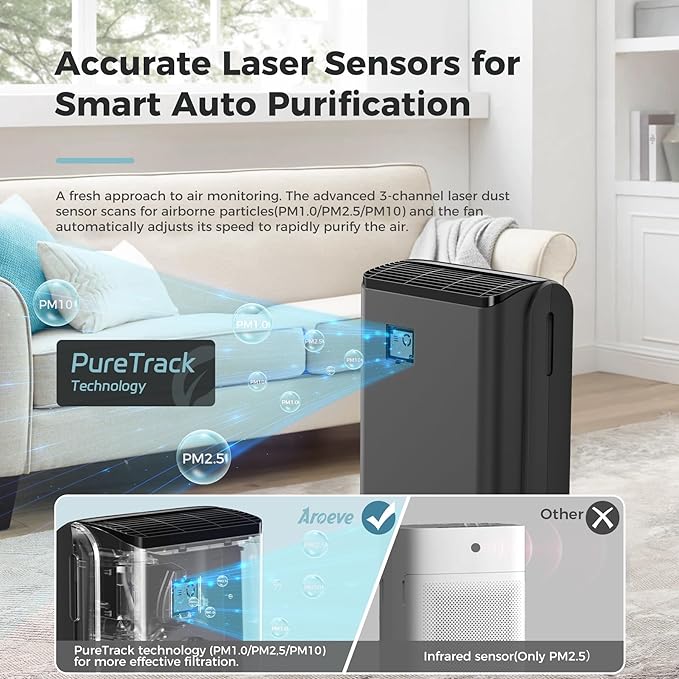 • Quiet and Calming: With advanced technology, this air purifier keeps noise levels close to a whisper at 23 dB. Choose the sleep mode at night for a peaceful rest. AROEVE MK07 eliminates the disturbance of typical air purifier sounds. Ideal for bedrooms, offices, or living rooms
