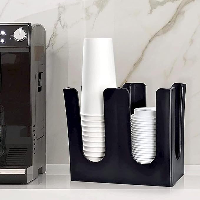 Tirifer 2 Pack Disposable Paper Cup Dispenser, 2 Compartment Coffee and Lid Storage Organizer Holder for Countertop Bar Restaurant Breakroom, Black