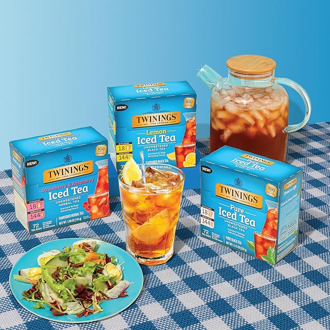 Twinings Lemon Black Iced Tea, 72 Oversized Tea Bags, Makes 18 Pitchers or 144 Servings, Unsweetened, Caffeinated, 72 Count (Pack of 1)