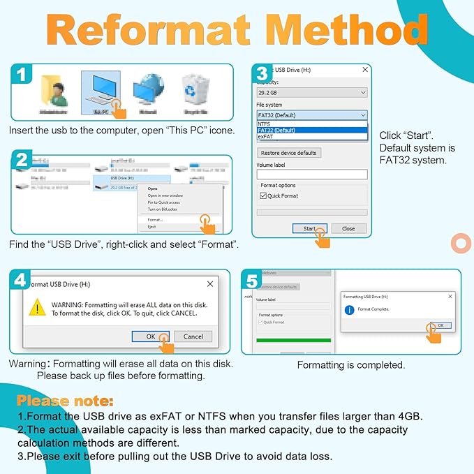 • No need to install any software, plug in and use it: Reliable universal USB drive can be used in computer, TV, speaker, notebook, car audio and others. Suitable for storing, transferring and sharing digital data for work, school, business, daily usage