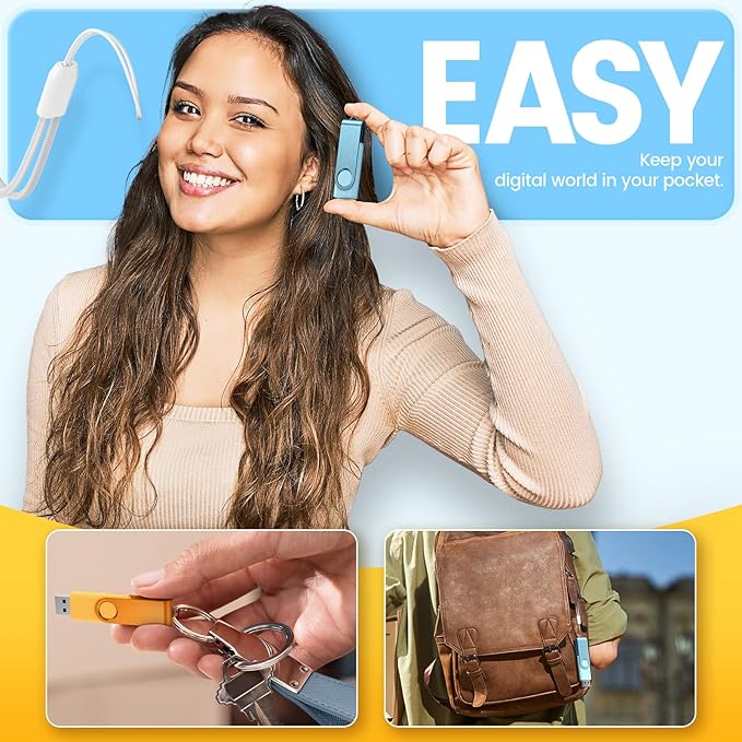• The aluminum clip rotates 360° round the ABS plastic body: The capless design can avoid lossing of cap, and providing efficient protection to the USB port. With keychain design that can easily attach to your key ring or backpack, and for easy carrying