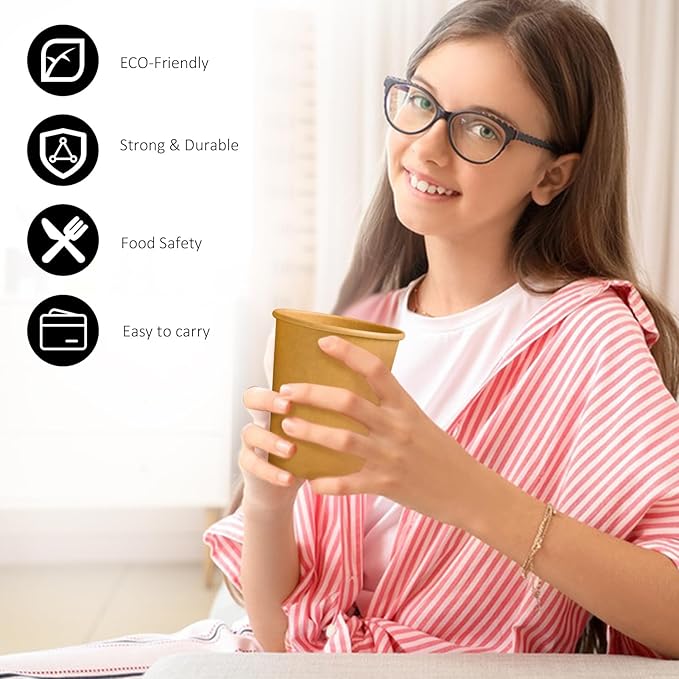 • 【Widely Usage】The kraft cups can be ideal for family, school, office, birthday, wedding parties, cafes, restaurant, churches or for your picnic, so that you can make time for your guests rather than worry about washing the dishes