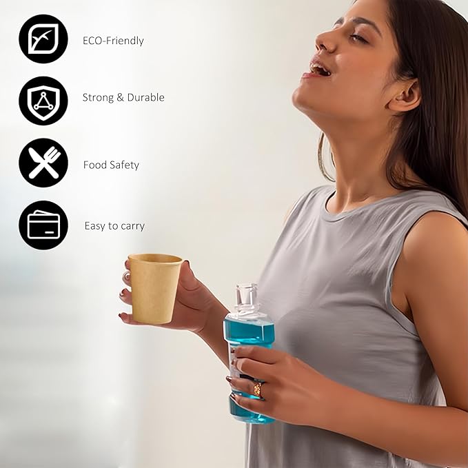 • 【Strong Enough Materials】The sturdy kraft cup is made of thickened high quality paper and the rolled cup rim is firm and strong. The threaded design at the bottom of the cup prevents any leakage, so you can use it several times without the cup becoming weak.