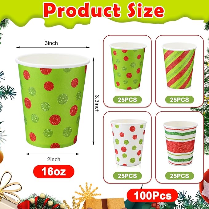 • Beautiful Design: the disposable Christmas cup comes in 4 different patterns, including red and green stripes and polka dots; Rich patterns and innovative designs make Christmas cups exquisite and beautiful
