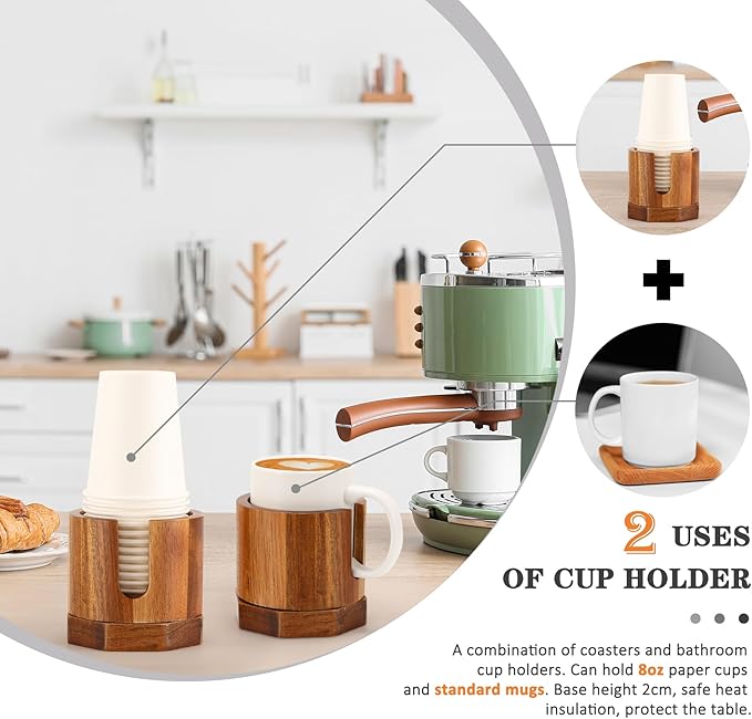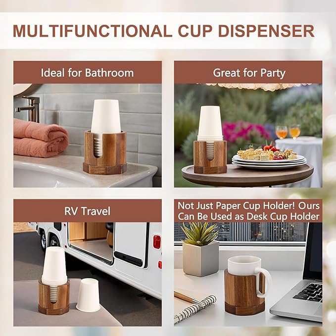 Nnewvante Cup Dispenser, 5-8oz Bathroom Cup Holder, Acacia Wood Coffee Cup Dispenser, Dual-Purpose Paper Cup Holder & Anti-spill Desk Cup Holder, Party Cup Organizer, Guest Bathroom Essentials