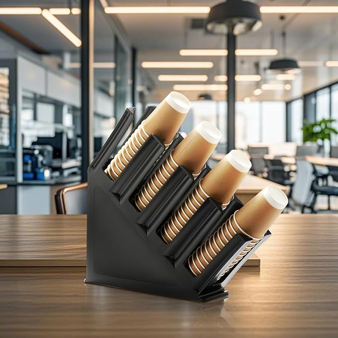 • ๐ŸฅคFUNCTIONAL DESIGN:The tiered 4-compartment graduated coffee cup dispenser, you can put paper cups, plastic cups, lids, straws, etc., a good helper for coffee station