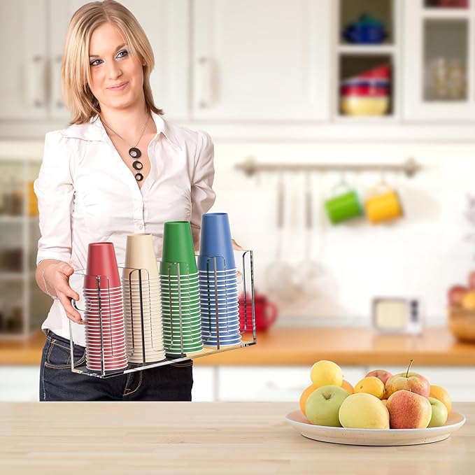 • MODERN: well made and durable, with a glossy surface, this functional acrylic coffee bar organizer features smooth rounded edges and polished surfaces, it complements various decor styles and adds a touch of elegance to your coffee maker area in the kitchen, disposable coffee cup holder for countertop can be used in coffee bar, office, breakroom, restaurant, church, RV, makes a nice hostess gifts for christmas party or family gatherings