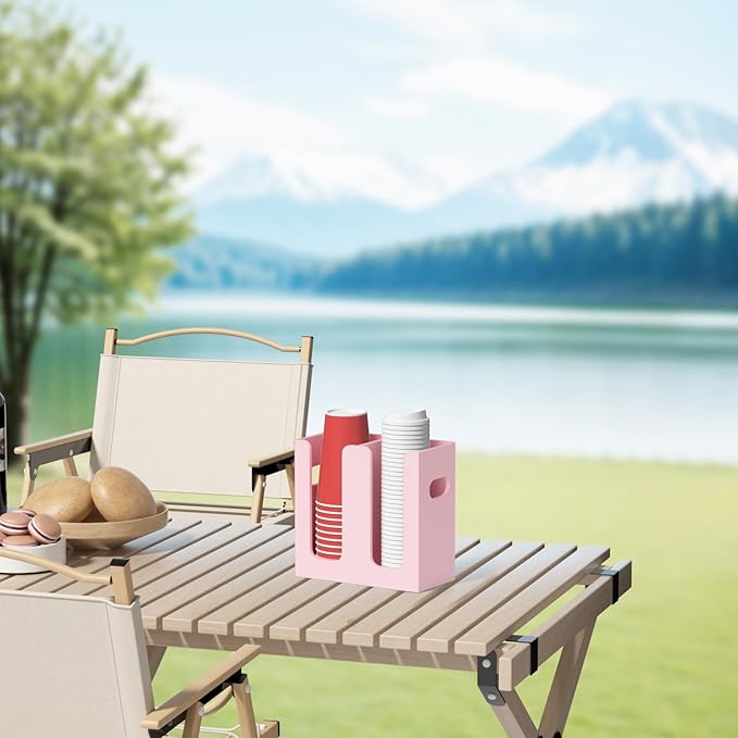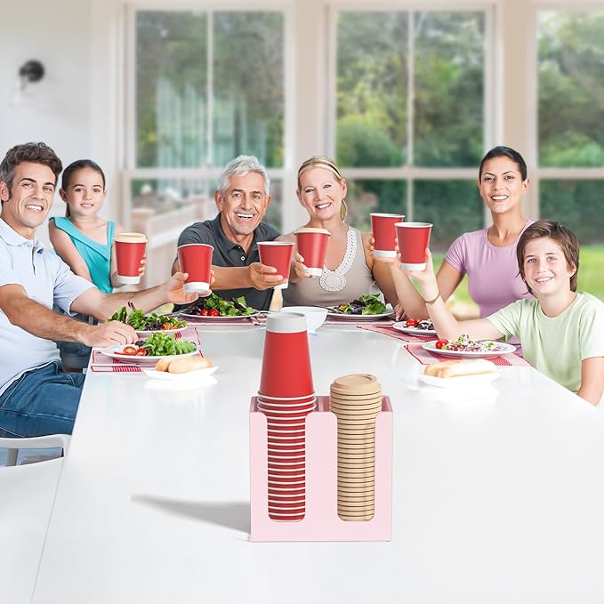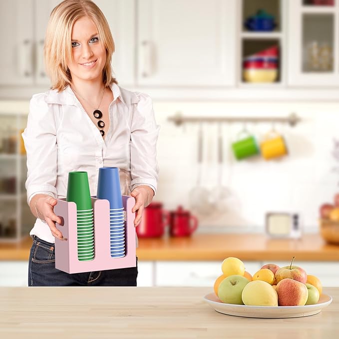 WINFFOR Disposable Cup Organizer Dispenser - 2 Compartments Lightpink Acrylic Cup and Lid Holder with Handles Plastic Cup Dispenser Countertop Paper Cup Holder for Coffee Bar House Party Essentials