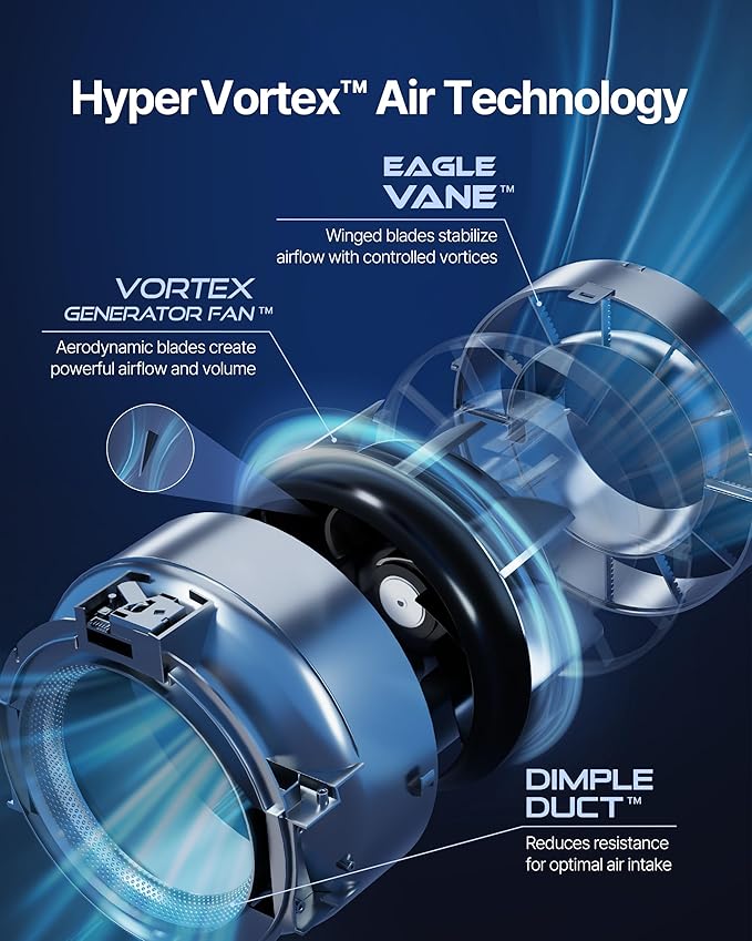 • The All-New HyperVortex system effectively cleans air in spaces up to 2,640 ft² in just 60 minutes and reduces noise level as low as 21.6db. (CADR: Dust 376, Smoke 352, & Pollen 419)