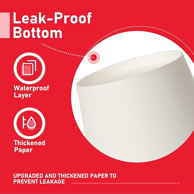 • Comfortable Experience: Featuring extra-thick walls with a reinforced coating, blocking leaks. These coffee cups can hold hot coffee or iced lattes. The rolled rim locks rigidity, even when reused.