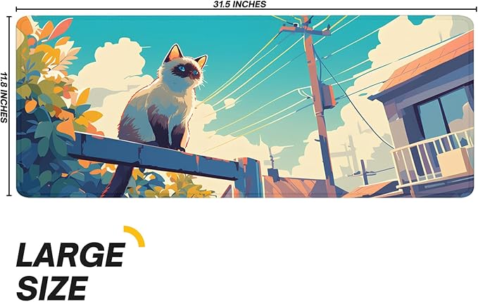 Anime Cute Cat with Sky Backgound Gaming Mouse Pad with Non-Slip Rubber Base, Large Kawaii Mousepad with Stitched Edges, Long Keyboard Mat for Laptop and Mouse, 31.5 x 11.8 inches