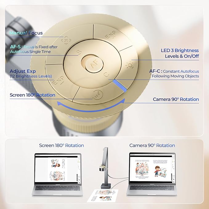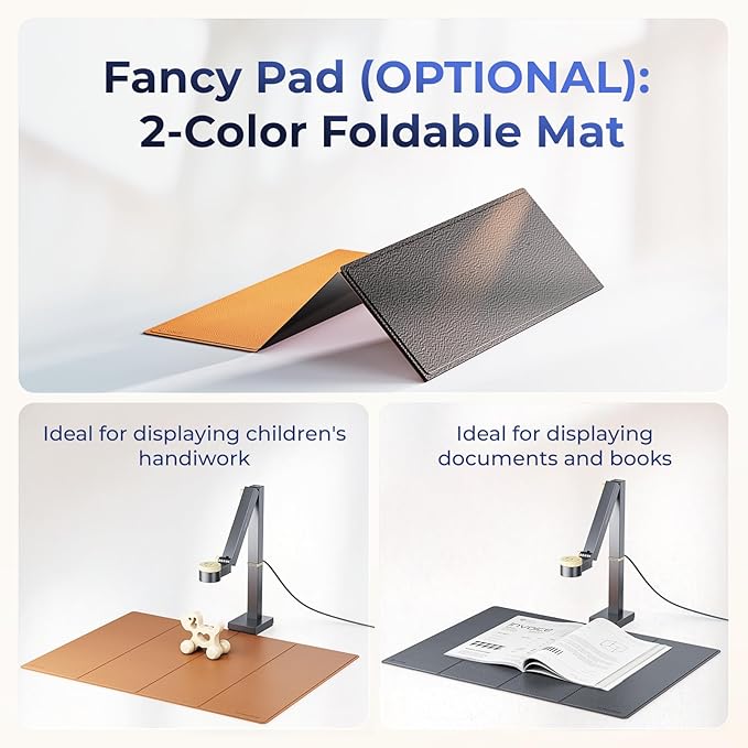 • 3-in-1 Document Camera & Webcam & Scanner: 1.As a document camera, Fancy S Pro can capture excellent real-time images of 2D and 3D objects for easy presentation; 2.Use it as a webcam for live streaming or conference calls; 3.As a document scanner, it is easy to digitize paper documents (note: you need to purchase an additional scanning mat for scanning)