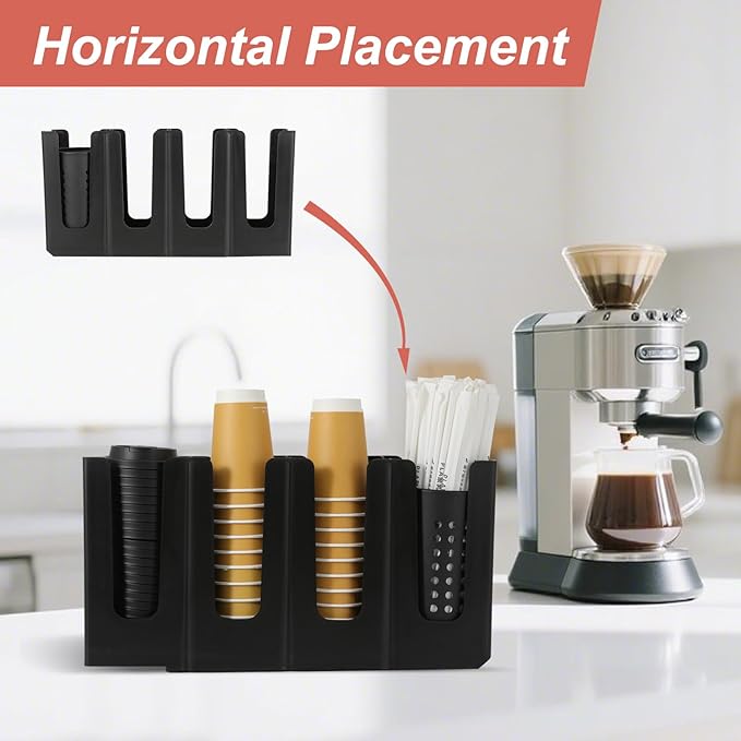 • 【Applicable Size】: The cup and lid holder is suitable for 6 oz 10 oz 12 oz 14 oz 16 oz 20 oz 22 oz paper cups and plastic cups. Perfect for disposable coffee cups, beverage cups, beverage cups and milk cups. Keep all cups and cup lids intact and easy to access.