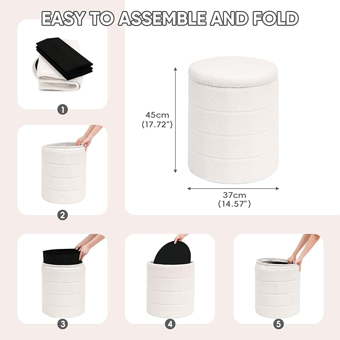 • 【Easy to Assemble & Removable】 This ottoman can be easily assembled so that you can make the most of the unused space around the house. This storage ottoman can be easily folded when not in use, and it has a practical design that makes it easy for you to move.Storage footstool with detachable cloth cover for easy cleaning.