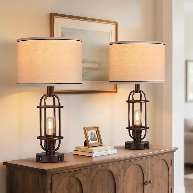Living Room Lamps Set of 2, 22.3" Farmhouse Table Lamp for Bedroom, Vintage Lamps for Night Stands with USB Ports, Oil Rubbed Bronze