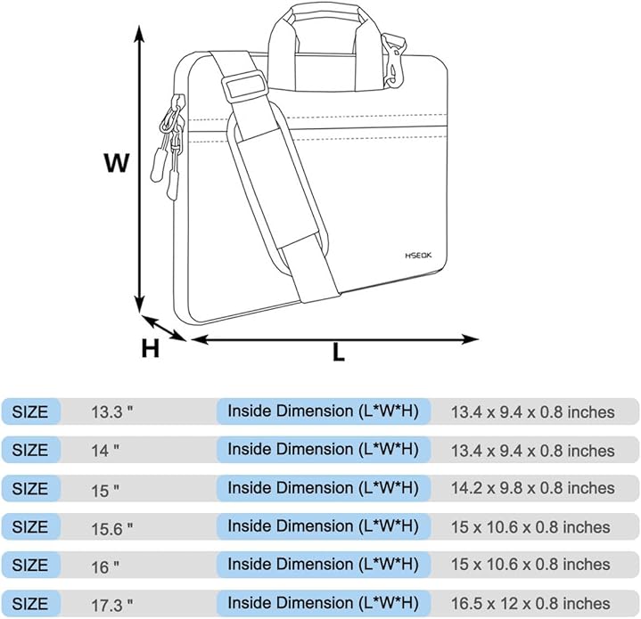 • Dimensions & Materia: The 15 inch laptop shoulder bag internal dimension is: 14.2 x 9.8 x 0.8 inches (L x W x H), the laptop briefcase with premium water repellent fabric and handle and adjustable strap