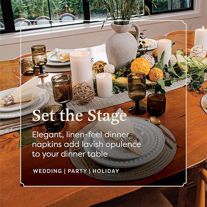 Linen-Feel European-White Paper Napkins - Decortive Cloth-Like Disposable Dinner Napkins - Soft And Absorbent. For Kitchen, Party, Wedding, Bathroom Or Any Occasion. (Pack of 200)
