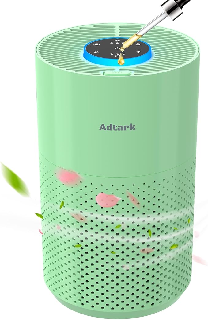 Air Purifiers for Home Bedroom, ADTARK Air Cleaner with H14 True HEPA 3-in-1 Filter, Sleep Mode & Aroma Function, 3 Light Modes, Room Air Purifier with 3 Timer for Office, Dorm, Hotel (Green)