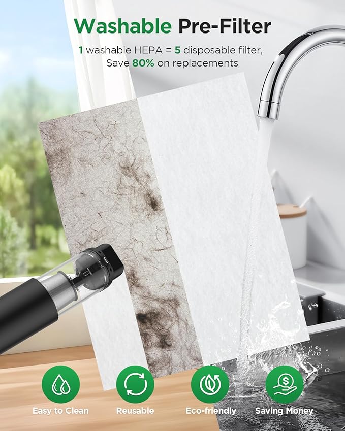 • [2 Washable Pre-Filters & Filter Replacement Alert]: Designed for convenience, this H13 True HEPA air purifiers for home includes 2 reusable pre-filters that trap dust, pet hair, and dander, prolonging the main filter’s lifespan. A smart indicator alerts you when it’s time for a replacement, guaranteeing consistent performance