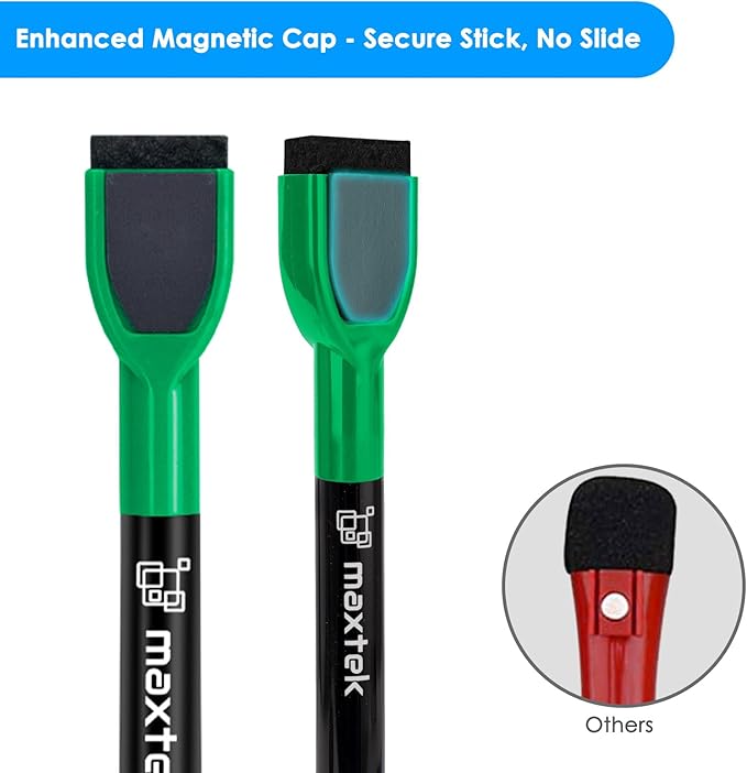 • Reinforced Magnetic Caps: Built-in Reinforced Magnets in Pen Cap, adhesive freely on any metal & magnetic surface; No worry about weak absorption & drop for the magnets on the white board pen