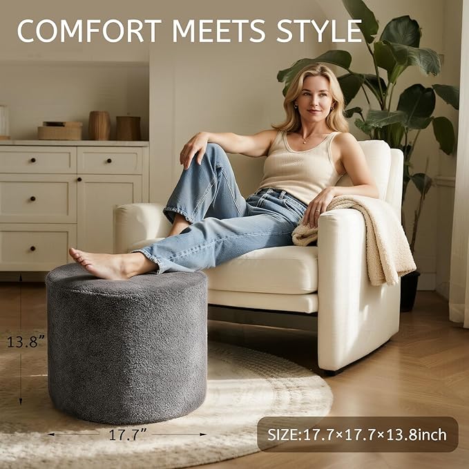 • Round & Stylish Design: Measuring 17.7"D x 17.7"W x 13.8"H, this round ottoman with soft bouclé fabric adds a cozy yet elegant accent that blends seamlessly with your home decor.