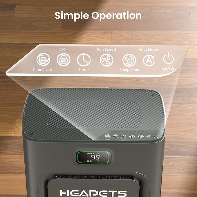 • Certifications and After-Sales Service: Our this 2025 Upgraded Air Purifier is CE, EPA, ETL and FCC certified and complies with the California Air Resources Board (CARB) and California Proposition 65 (CA65) for indoor cleaning equipment. Each HEAPETS air purifier comes with 12 months warranty, 7/24 hours customer service and lifetime technical support. If you have any concerns or issues, please feel free to contact us.