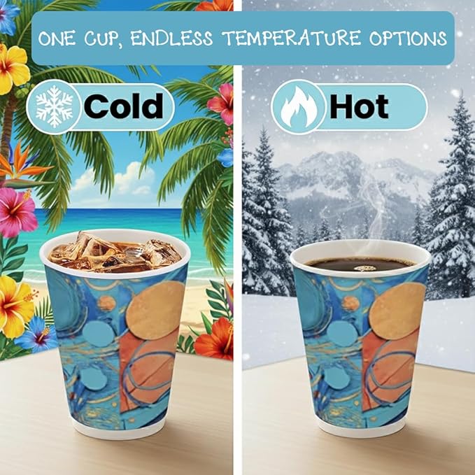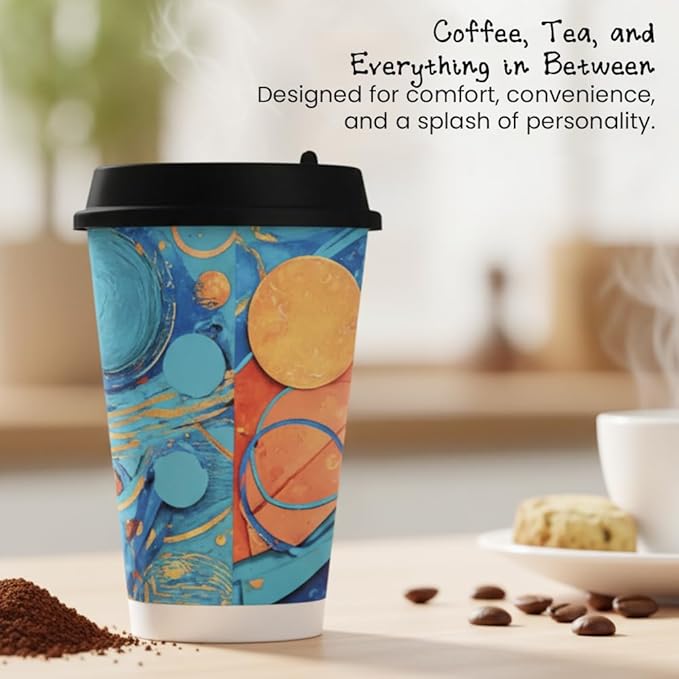 To Go Paper Coffee Cups With Lids, 12 oz, 150 ct, Disposable Insulated Paper Cups for On-The-Go Hot or Cold Beverages,Multi use, Work, Home, Party, Holiday, stylish look
