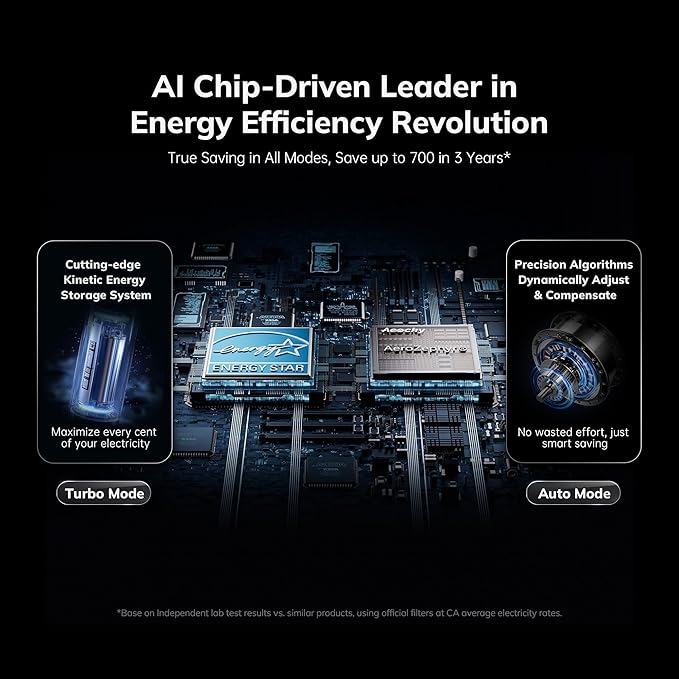 • 【AI-Driven Air Quality Monitor & Auto Mode】Equipped with ultra-precise air quality sensor that requires no cleaning or maintenance. Powered by an AI chip with multi-parameter fusion, advanced algorithms, and automatic calibration, it delivers 35% higher accuracy and 60% faster response time than standard sensors. The system displays air quality in real time, and in Auto Mode, it intelligently adjusts fan speed based on current conditions to maintain clean air while optimizing energy efficiency