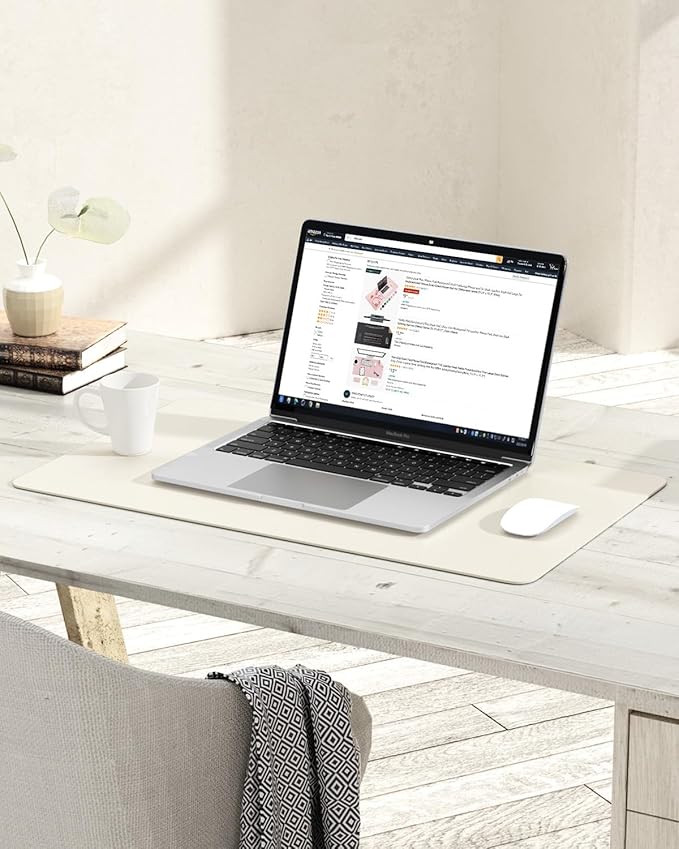 YSAGi Non-Slip Leather Desk Pad, Desk Matt for Desktop, Waterproof Laptop Computer Keyboard Mat, Table Protector Blotter Mat, Large Mouse Pad for Office/Work/Home/Decor(Cream, 23.6" x 13.7")